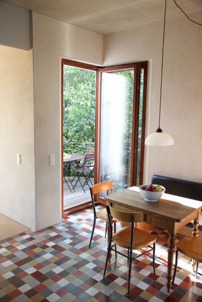 Fußboden aus fugenlos verlegten Zement-mosaikplatten.