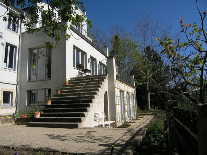 Die neue Freitreppe in den Garten wurde im unteren Teil mit historischen Sandsteinstufen gebaut. Die oberen Stufen wurden im gleichen Profil in Stahlbeton gegossen.