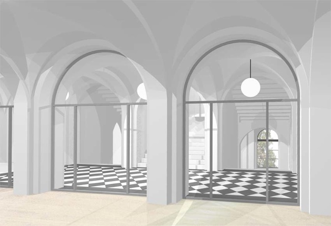 Die Wandöffnungen zum Haupttreppenhaus werden aufgebrochen und mit festen brandgeschützten Glaselementen versehen. Dadurch werden neue Blickverbindungen durch das Gebäude geschaffen und die natürliche Belichtung in der Tiefe der Räume verbessert.