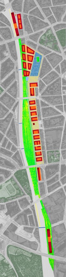Zentrales Anliegen war die Schaffung eines durchgängigen "Gleis"-Parks, der als grüne Lunge der engen Düsseldorfer Innenstadt Luft verschaffen und darüber hinaus die historische Trennung der durch die Gleis-anlagen der Bahn separierten Stadtteile Düsseltal und Pempelfort überwinden sollte.
