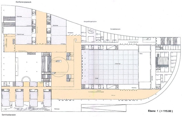 Kongressebene 1 mit vielfältigen Promenaden und Blickbeziehungen zu Stadt und Fluss