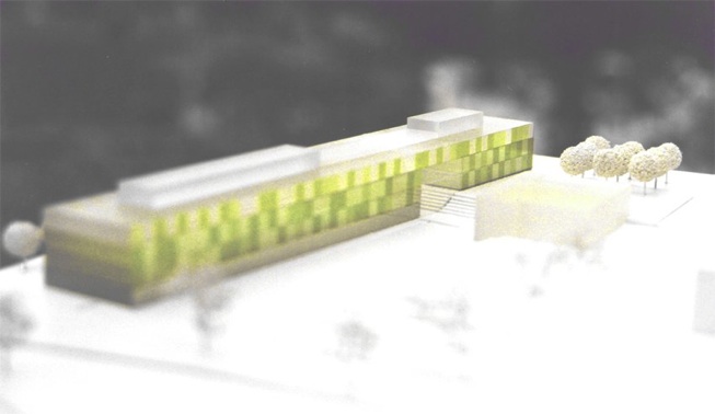 Ein schlanker Gebäuderiegel gruppiert die Räume der theoretischen und der praktischen Physik um ein zentrales Erschliessungs-atrium.